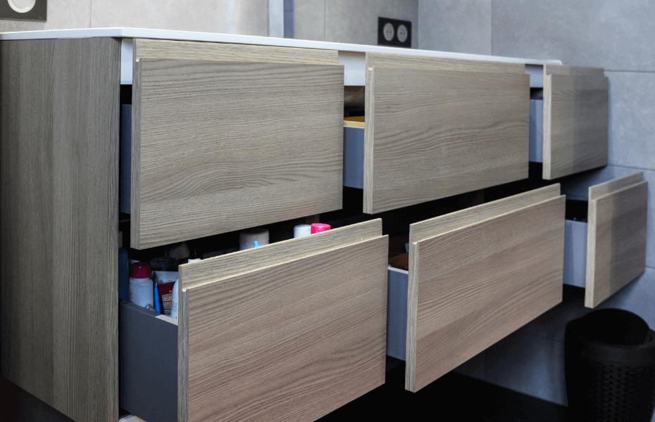 Au cœur de la région de Lyon Est, dans un espace de 15 m², le projet de cette salle de bain à Crémieu a été une véritable renaissance. Partant d'une feuille blanche, nous avons façonné un espace fonctionnel et esthétiquement remarquable, repartant de zéro pour créer un environnement captivant : Meuble structuré en Bois : Arborant un design contemporain, le choix du bois confère à la salle de bain une ambiance chaleureuse, marquant une harmonie entre modernité et convivialité. Grand Miroir avec lumière intégrée : L'éclairage intégré au miroir garantit une luminosité optimale et ajoute une touche d'élégance à la pièce. Meuble de 160 cm et rangements en tiroirs : L'association d'un meuble de grande envergure et de tiroirs nombreux permet d'organiser vos affaires sans compromettre l'esthétique. Vasque en Synthèse Blanc : Le design épuré de la vasque en synthèse blanc offre non seulement un look raffiné, mais également un espace de rangement astucieux. Robinet chromé haut de gamme : La touche finale de la salle de bain, ce robinet chromé haut de gamme ajoute une finition parfaite à l'ensemble. Tiroirs du meuble vasque avec passage pour le siphon : Les détails astucieux comme le passage pour le siphon dans les tiroirs supérieurs du meuble vasque assurent un agencement pratique et élégant. Miroir rétroéclairé avec barre LED : L'éclairage LED intégré au miroir ajoute une dimension lumineuse subtile et pratique à l'espace. Le choix intelligent de la teinte bois pour les meubles et de la vasque en synthèse blanc se marie harmonieusement avec les murs carrelés à l'effet béton, créant ainsi une esthétique cohérente et apaisante. Contraintes et Solutions En partant de zéro, l'espace ne comptait plus de mur, de plomberie ni d'électricité. Afin de répondre aux besoins des clients pour un toilette à l'étage, une décision stratégique a été prise pour inclure un toilette dans le projet. Cette conception à Crémieu montre que le choix des coulissants avec amortisseur pour les tiroirs et la porte de la colonne, en plus d'assurer une durabilité, apporte une sensation apaisante à chaque utilisation.