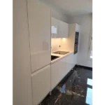 Cette réalisation signée Cuisines Oméga à Châteauroux met en avant tout le savoir-faire d'un cuisiniste à domicile pour créer un espace lumineux, ergonomique et parfaitement adapté aux petits volumes. Avec une implantation parallèle et des finitions laquées brillantes, ce projet valorise chaque mètre carré tout en apportant un maximum de confort au quotidien.