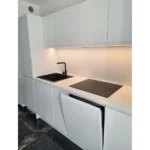 Conçue sur une surface de 8 m², cette cuisine contemporaine parallèle s’articule autour d’une double ligne de mobilier. L’agencement est pensé pour optimiser la circulation, même dans une pièce étroite. Les meubles de faible profondeur permettent une implantation aérée tout en préservant une capacité de rangement optimale.