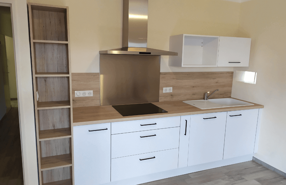 Vous rêvez d'une cuisine unique qui reflète votre style et votre mode de vie ? Laissez-vous séduire par notre réalisation à Nantes : la "Cuisine Cosy en I". Avec ses finitions en bois de San Remo et son implantation en I, cette conception optimise chaque centimètre de votre espace pour offrir un aménagement fonctionnel et esthétiquement plaisant. Imaginez-vous évoluer dans une cuisine blanche laquée mat avec un chant de façade en bois, donnant à l'ensemble un aspect cosy. La colonne ouverte, habillant astucieusement le conduit de cheminée, devient une pièce maîtresse de l'aménagement, ajoutant à la fois du rangement et de la décoration. Découvrez en détails ce que cette cuisine peut vous offrir. Prendre rendez-vous avec notre expert ou demander un devis dès aujourd'hui pour démarrer votre projet d'aménagement.