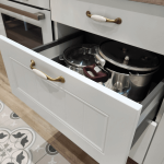 Imaginez une cuisine qui épouse à merveille chaque coin et recoin de votre pièce. Une implantation en L, symbole d'efficacité et de modernité. Située dans la charmante ville de Thise, cette réalisation conjugue esthétique campagne chic et fonctionnalité ultime, transformant chaque moment passé en son sein en une véritable expérience. Visualisez des façades blanches laquées, contrastées par des poignées en laiton massif et porcelaine, le tout s'intégrant parfaitement dans une surface généreuse de 18 m². Continuez votre lecture et découvrez comment Cuisines Oméga, avec l'expertise de Laetitia, a façonné cette pièce pour la convertir en un véritable chef-d'œuvre d'aménagement intérieur.
