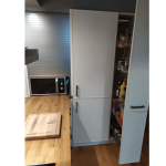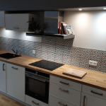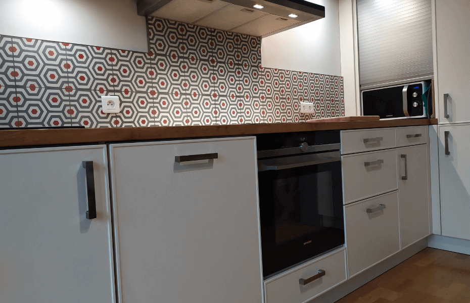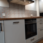 La Cuisine Contemporaine en L est un véritable chef-d'œuvre d'esthétique et de fonctionnalité. La conception moderne présente une harmonieuse palette de couleurs où le blanc laqué des façades s'associe parfaitement au chêne massif du plan de travail. L'ingéniosité du design est illustrée par le décroché spécialement conçu au niveau de la porte-fenêtre, permettant une ouverture sans encombre. Voici pourquoi ce modèle est parfait pour vous : Esthétiquement plaisante : Les façades laquées blanches avec un cadre fin apportent une touche de sophistication à votre intérieur. L'utilisation du bois massif pour le plan de travail ajoute une dimension chaleureuse et authentique. Pratique : Le décroché au niveau de la porte fenêtre pour permettre l'ouverture, le meuble haut avec lumière intégrée, et la hotte box design ne sont que quelques-uns des nombreux aspects fonctionnels de cette cuisine. Optimisation de l'espace : De nombreux rangements coulissants, y compris une colonne à épices, sont prévus pour un maximum de commodité. Un meuble à rideau permet de cacher une machine à café, et un réfrigérateur est intégré dans la colonne. Qualité garantie : La cuisine est réalisée par Ballerina, un fabricant allemand renommé pour son savoir-faire, sa robustesse et son design sobre. Les appareils électroménagers proviennent de Siemens, une marque synonyme de qualité. Accents de design : Une crédence en carreau de ciment et un lévier en granit noir ajoutent des notes contemporaines et chic à l'ensemble. Pour accentuer le style contemporain, nous avons choisi des façades dotées d'un cadre fin très design, accompagnées d'un lévier en granit noir à poser, ajoutant une touche de contraste raffiné. Enfin, pour envelopper l'ensemble de la cuisine, une cloison en placo a été conçue, contribuant à son allure moderne. Les murs sont ornés de carreaux de ciment pour une touche finale contemporaine.