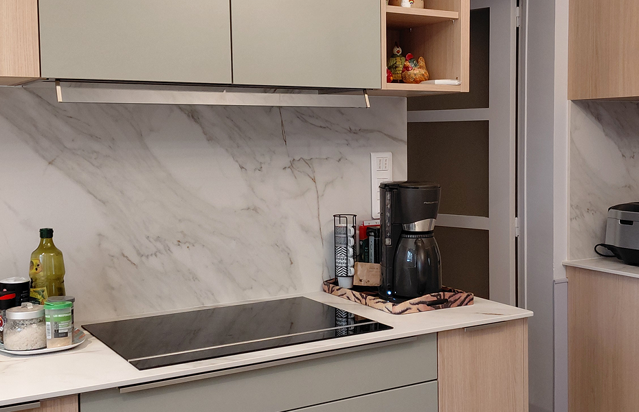 Le projet comprenait l’ouverture d’une fenêtre afin d’apporter davantage de lumière naturelle, la réfection des peintures ainsi que le remplacement intégral de la cuisine.