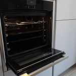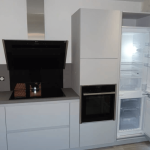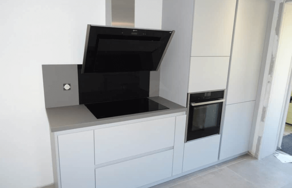 Cuisine Fenix® en camaïeu de gris est une réalisation qui fusionne beauté, fonctionnalité et propreté : Avantages distinctifs : Évier grande cuve de chez Franke, leader mondial. Rangements optimisés pour un espace toujours organisé. Lignes modernes avec une cuisine sans poignées. Anti-trace et antibactérien : Le matériau Fenix® assure non seulement une esthétique premium mais également une hygiène impeccable. Fonctionnel : avec une optimisation des rangements comme le sous évier coulissant et sa poubelle intégrée. Optimisation de l'espace : Avec un linéaire intelligent, intégrant colonnes de rangement, étagères pour épices et meubles hauts avec éclairage LED, chaque centimètre est exploité pour votre confort. La dominance du gris clair apporte une modernité évidente, tout en restant suffisamment neutre pour s'adapter à diverses décorations intérieures. Les finitions laquées mat des façades assurent une élégance sobre et intemporelle. La combinaison avec le gris anthracite du plan de travail donne de la profondeur à l'ensemble. Le fond de hotte en verre noir, parfaitement en accord avec l'électroménager noir, ajoute une touche élégante. Cette conception à Mulhouse illustre bien l’optimisation de l’espace notamment avec le choix de son électroménager et le Four slide and hide. C'est non seulement esthétiquement plaisant, mais aussi extrêmement pratique.