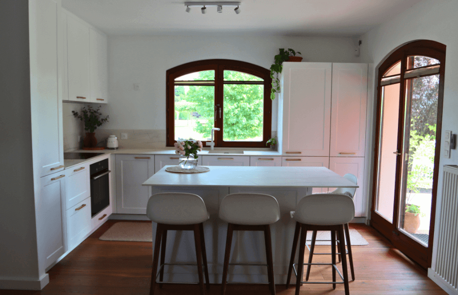 Ce projet de cuisine contemporaine avec îlot central, conçu pour un espace de seulement 12 m² à Issy-les-Moulineaux, démontre brillamment la capacité de notre concepteur à transformer un espace restreint en un lieu convivial et fonctionnel. Les avantages de cette conception sont multiples : Évier sous plan : L'utilisation de l'évier sous plan contribue à créer une esthétique épurée et élégante, tout en maximisant l'utilisation de l'espace. Aménagement d'angle ingénieux : Les rangements coulissants dans l'aménagement d'angle permettent une utilisation optimale de chaque coin de la cuisine, ce qui est essentiel dans un espace limité. Grande capacité de rangement : Les colonnes, les rangements coulissants et les portes offrent une capacité de rangement généreuse pour organiser efficacement tous les ustensiles et les provisions. Hotte intégrée : La hotte intégrée ajoute à la fois un aspect moderne et fonctionnel à la cuisine, en contribuant à maintenir un look épuré. Îlot central polyvalent : L'îlot central, en plus d'offrir un espace idéal pour les repas en famille, propose également des espaces de rangement supplémentaires, ce qui en fait un élément clé de la fonctionnalité de la cuisine. Style contemporain : Le style contemporain de cette cuisine la rend parfaitement adaptée à une cuisine familiale, alliant fonctionnalité et esthétique de manière harmonieuse. La sélection des couleurs pour cette cuisine a été minutieusement réfléchie pour créer une atmosphère exceptionnelle. Le blanc domine, favorisant une ambiance lumineuse et apaisante tout en servant de toile de fond fraîche qui met en valeur les autres éléments de la cuisine. Les façades à cadre blanc mat ajoutent une touche intemporelle et sophistiquée, tandis que les poignées dorées créent un contraste accrocheur tout en apportant une note de luxe. En résumé, cette sélection de couleurs crée une cuisine à la fois fonctionnelle et esthétiquement agréable, offrant un équilibre subtil entre luminosité, sophistication et élégance. Contraintes et SolutionsLa principale contrainte de ce projet était la hauteur de la fenêtre existante. Pour résoudre ce défi, notre cuisiniste Cuisines Oméga a opté pour des caissons de hauteur spécifique qui ont permis de maintenir l'utilisation de la fenêtre tout en optimisant l'aménagement de la cuisine. Cette expérience démontre notre engagement à relever les défis et à concevoir des espaces uniques qui répondent aux besoins et aux particularités de chaque projet. Cette réalisation de cuisine contemporaine avec îlot central réalisée à Issy-les-Moulineaux est un exemple éloquent de la manière dont le choix des éléments peut aider à maintenir la continuité du design. Par exemple en choisissant un mitigeur ou l’électroménager assorti aux autres éléments de la cuisine, permet d’offrir une expérience cohérente et esthétiquement plaisante.