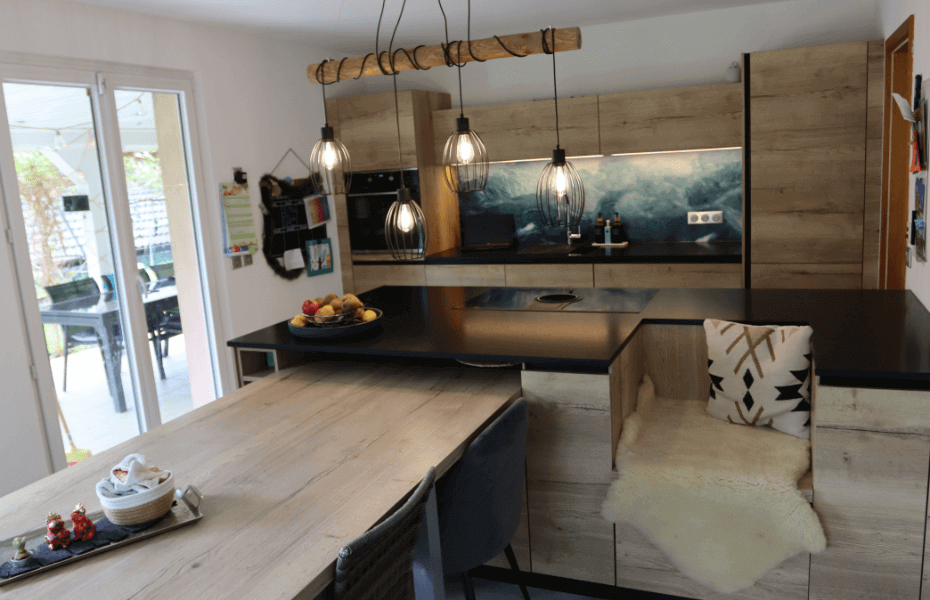 Le projet de cuisine industrielle avec îlot central, situé dans le 15ème arrondissement de Paris offre une expérience culinaire à la fois captivante et chaleureuse. La fusion du bois et du granit crée un contraste visuel saisissant, tout en garantissant une fonctionnalité exceptionnelle et une élégance incontestable. Cette réalisation présente une série d'avantages considérables : Détails Techniques : Des détails tels que la hotte intégrée dans la plaque de cuisson et l'évier en granit mettent en lumière la qualité de la conception et l'attention portée aux finitions. Ces éléments techniques ajoutent une dimension sophistiquée à la cuisine. Espace et Rangement : L'îlot central, doté d'une table à manger et d'une banquette, maximise intelligemment l'utilisation de l'espace. De plus, l'intégration de rangements dans l'îlot, notamment pour les jouets, représente une idée novatrice, particulièrement adaptée aux familles avec enfants, permettant ainsi d'organiser efficacement l'espace. Matériaux et Style : L'utilisation judicieuse du bois et du granit noir, associée à une finition laquée mate, confère à la cuisine un style industriel distinctif, à la fois moderne et intemporel. La combinaison experte de bois et de granit noir dans cette cuisine crée une esthétique qui incarne à la fois la modernité et l'intemporalité. Ce choix de matériaux harmonieux est le reflet d'une conception de cuisine exceptionnelle qui transcende les tendances éphémères pour offrir une beauté durable. D'un autre côté, le granit noir confère à la cuisine une aura de sophistication et de modernité. Cette réalisation de cuisine industrielle avec îlot central réalisée à Paris dans le 15ème arrondissement illustre l'ingéniosité de l'optimisation de l'espace, tout en introduisant des solutions de rangement innovantes, parfaitement adaptées aux besoins des familles. Pour ceux qui recherchent une cuisine à la fois fonctionnelle et élégante, cette réalisation est une invitation à l'exploration.