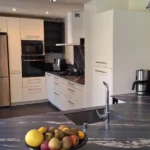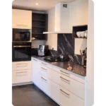 Conseil du concepteur : Pour maximiser l’impact d’une petite cuisine ouverte, optez pour des tons clairs et des surfaces mates qui absorbent la lumière sans reflétions excessives.