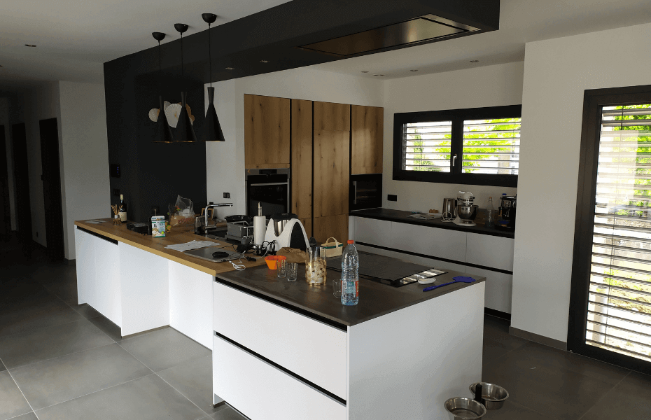 Imaginez votre maison équipée d'une cuisine contemporaine de rêve. Un espace ouvert qui respire la modernité et l'élégance, tout en étant pratique et convivial. Cette réalisation n'est plus un simple rêve, elle existe déjà à Bron. Vous avez toujours rêvé d'une cuisine où esthétisme et fonctionnalité vont de pair ? C'est exactement ce que propose notre projet de cuisine contemporaine ouverte à Bron. Avec son îlot central spacieux, son espace repas intégré, et son impressionnante cave à vin, cette cuisine n'est pas seulement belle à voir, elle est aussi conçue pour faciliter votre quotidien. Qui ne serait pas séduit par les finitions en bois, les appareils électroménagers intégrés, la hotte dissimulée dans le plafond et les nombreux rangements ? Sans parler du design sans poignée qui apporte une touche de sophistication supplémentaire. Alors, qu'attendez-vous ? Si vous êtes propriétaire et envisagez de rénover ou d'aménager votre cuisine, n'hésitez pas à explorer cette réalisation. Prenez rendez-vous pour discuter de votre projet, ou demandez un devis pour découvrir comment cette cuisine contemporaine ouverte pourrait transformer votre maison.