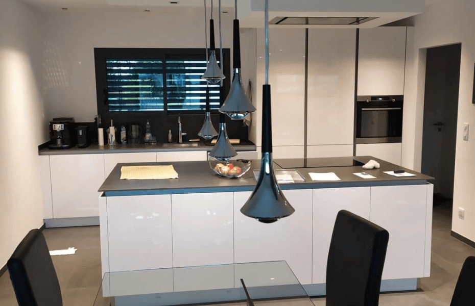 Si vous êtes propriétaire d'une maison ou d'un appartement, vous savez à quel point il est essentiel d'avoir un espace de cuisine qui reflète non seulement votre style, mais aussi votre mode de vie. Imaginez une cuisine sans poignée, ultra-moderne, suréquipée pour chaque besoin et exigence. Un lieu où le design rencontre la fonctionnalité. Dans le monde de la rénovation et de l'aménagement intérieur, le détail est roi. Et quoi de mieux que de disposer d'une cuisine qui, au-delà de sa beauté esthétique, offre une ergonomie et une durabilité sans pareil ? Visualisez un plan de travail en céramique résistant aux chocs et rayures, des coulissants intérieurs astucieux, et un îlot central majestueux, tout cela dans l'ambiance sereine, c’est ce que nous avons réalisé pour l’un de nos clients à Fislis. Ne rêvez plus. Passez à l'action.
