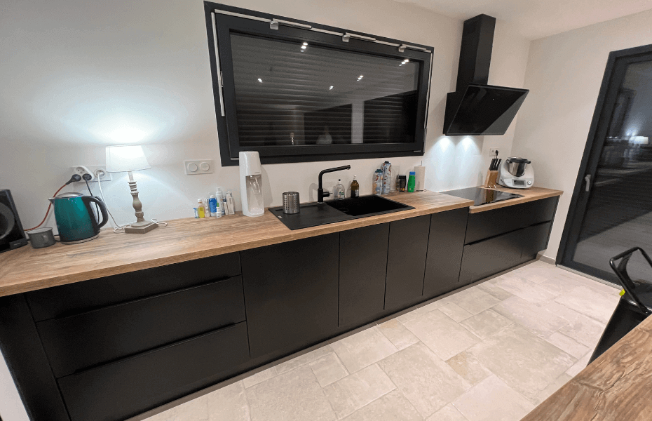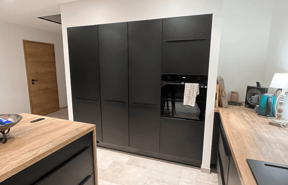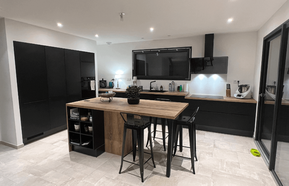 Avez-vous déjà rêvé d'une cuisine ouverte, spacieuse et lumineuse, combinant design et fonctionnalité ? Chez Cuisines Oméga, nous avons rendu ce rêve possible pour un client à La Neuvelle-lès-Lure. Mettant en valeur la combinaison intemporelle de noir et bois, cette cuisine design ouverte est l'incarnation même de l'élégance contemporaine.