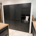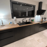 Le défi passionnant de ce projet était de concevoir une cuisine linéaire avec un espace de cuisson rabaissé. La cuisine design ouverte que nous avons créée à La Neuvelle-lès-Lure est un triomphe du design moderne et de la fonctionnalité. L'Espace de Cuisson Rabaissé : Créer une zone de cuisson à une hauteur réduite a permis de faciliter l'accès à la cuisinière, en améliorant l'ergonomie de la cuisine. Cela a également offert une esthétique unique à la conception générale, renforçant l'aspect moderne et design de l'espace. Le Mur d'Armoires : L'installation d'un mur d'armoires a fourni une quantité considérable de rangement, tout en gardant une cuisine linéaire. Le mur d'armoires, avec sa finition en noir laqué mat, apporte une note de sophistication à l'ensemble. Choix des Couleurs : L'association du noir et du bois donne à la cuisine une ambiance chaleureuse et contemporaine. Le contraste entre ces deux tons apporte une dimension sophistiquée à l'ensemble. Avantages de la cuisine : Beaucoup de rangements grâce au mur d'armoires pour une organisation optimale. Électroménagers intégrés pour une uniformité esthétique. Prises intégrées à l’îlot pour une praticité sans compromis. Espace repas pour des moments conviviaux en famille ou entre amis. Tiroirs coulissants pour un accès facile aux ustensiles. Espace optimisé pour une circulation fluide et sans encombrement. Les propriétaires d'une maison, d'un appartement ou d'un logement souhaitant un aménagement intérieur ou une rénovation trouveront cette cuisine design ouverte idéale pour leur projet.
